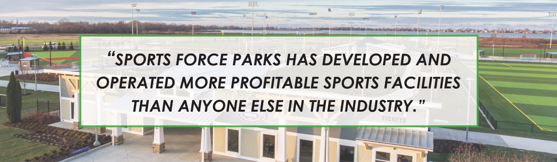 We created Sports Force Parks with the mission of creating sports complexes that drive profitability, maximize economic impact, increases local use opportunities and lower/eliminate public risk. All of our parks are set up with long-term management agreements that incentivize our upside through profitable operations, not through guaranteed management fees and backstop subsidies. By tying our upside to operational profitability we are required as a company to maximize programming and visitation, which in turn maximizes economic impact, development and local opportunity.